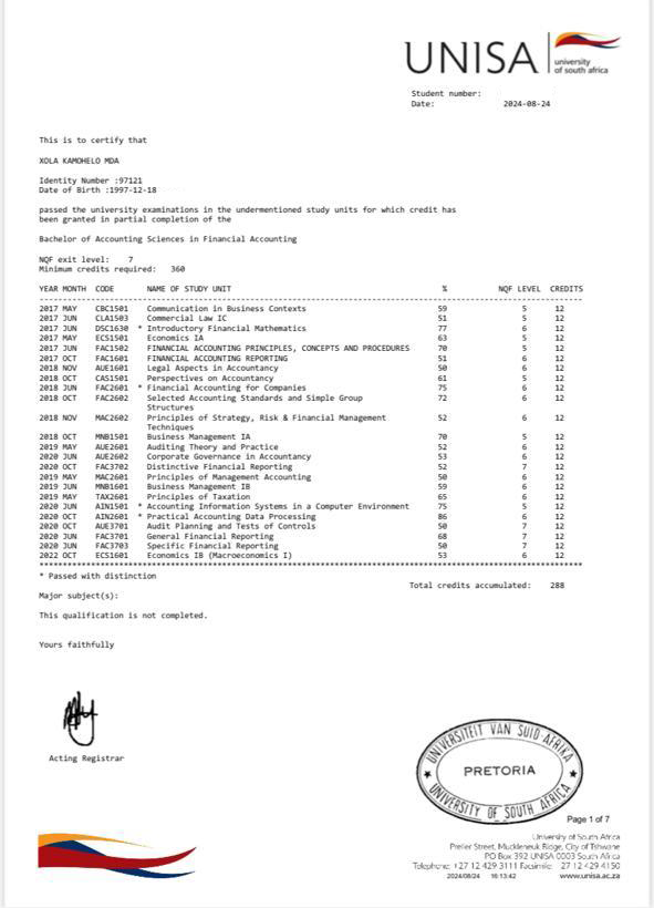"Let's Walk really helped me out on my accounting supplementary exams, I got to the exam with 40% participation mark and lucky qualified for exam, I forced to study alone and unfortunately didn't make it in the first opportunity. I was helped by Let's Walk who managed to equip me with user friendly study material and explaining skills that make me understand the concepts more easily I managed to achieve more that enough marks after the tutoring serverces, I got 75% for the exam which made me qualify for the degree💯. I must say without the amazing tutoring services I received I wouldn't have been able to achieve those marks. Thank you Mr 🤝"